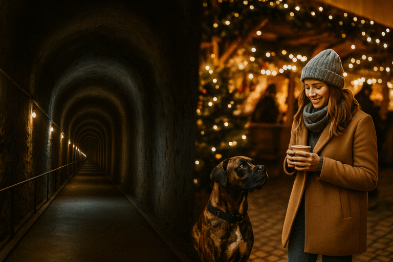 Stollen-Challenge – Der Mut-Test gleich am Start:  Enge Wände, Hallgeräusche, wechselnde Lichtverhältnisse. Ein Setting, in dem dein Hund lernt, dir zu vertrauen und sich an dir zu orientieren. Ein echtes Abenteuer für Mensch und Hund – sicher begleitet und professionell geführt.